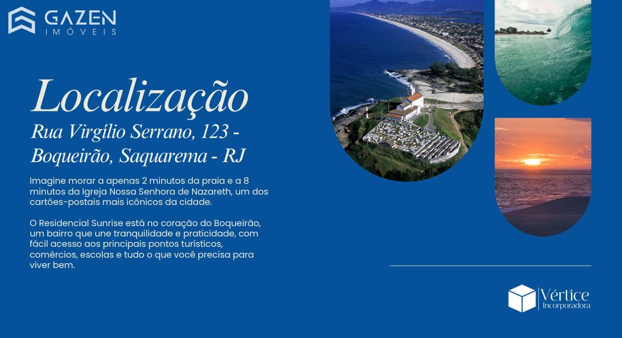 Localizado no charmoso bairro do Boqueirão, em Saquarema, o Residencial Sunrise oferece a combinação perfeita entre tranquilidade, funcionalidade e lazer. São apartamentos de 2 quartos, sendo 1 suíte, com vaga de garagem e acabamento de alto padrão.